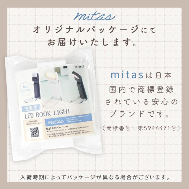 【mitas公式】 ブックライト 充電式 読書灯 寝ながら USB LED 調光 ケーブル付き クリップ 読書ライト 持ち運び 明るさ調整 色温度 角度調節 リーディングライト 寝かしつけ しおり 本につける 勉強 夜間 キャンプ 緊急 停電 地震 防災 夜間 非常用 コードレス 携帯用