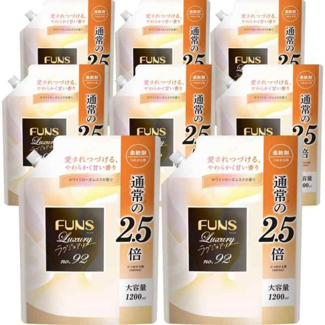 [FUNS公式] 洗濯柔軟剤 【 ファンス ラグジュアリー 柔軟剤 】 オーガニック 柔軟剤詰め替え (ほんのり香る) 部屋干し 大容量 (ホワイトローズムスクの香り) (1.2リットル (x 8))