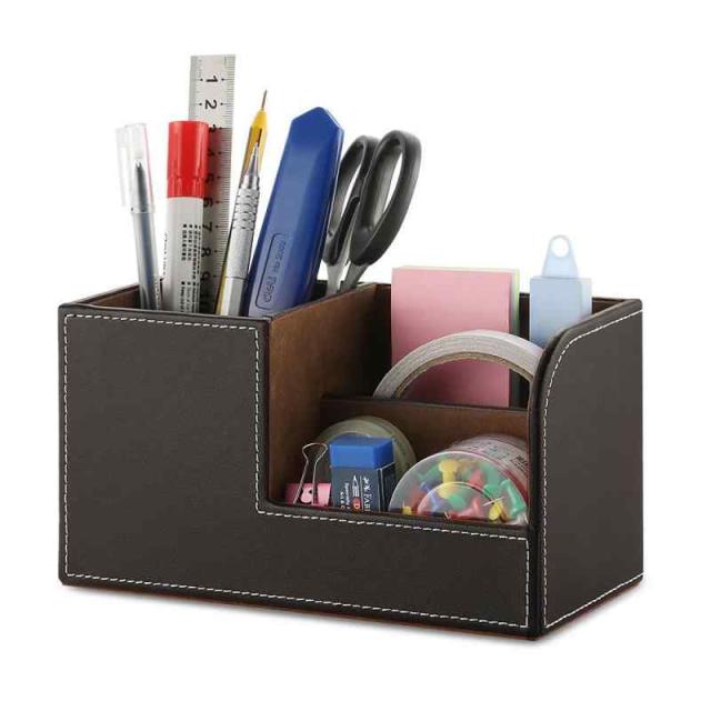 デスクオーガナイザー ペン立て 卓上収納 小物入れ リモコンスタンド 机上用 PUレザー (ブラウン)