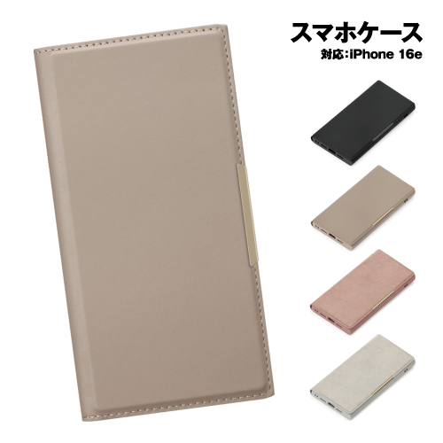 送料無料 iPhone17e/16e用 MagSafe対応 クリアフリップケース PUレザー スエード調 PG-25KMC01-4 /ブラック ベージュ ピンク グレー