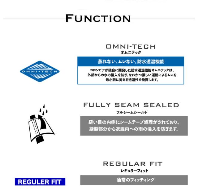 防水透湿機能「オムニテック」が雨の浸入を防ぎながら蒸れを抑え、快適な着心地を保ちます。