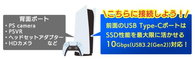 PS5ではType-Cポートに挿すと背面ポートが埋まらない