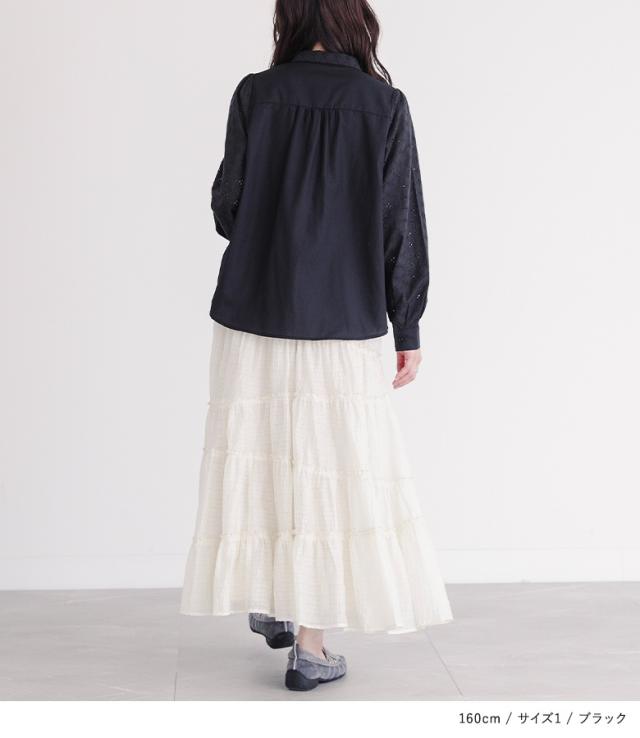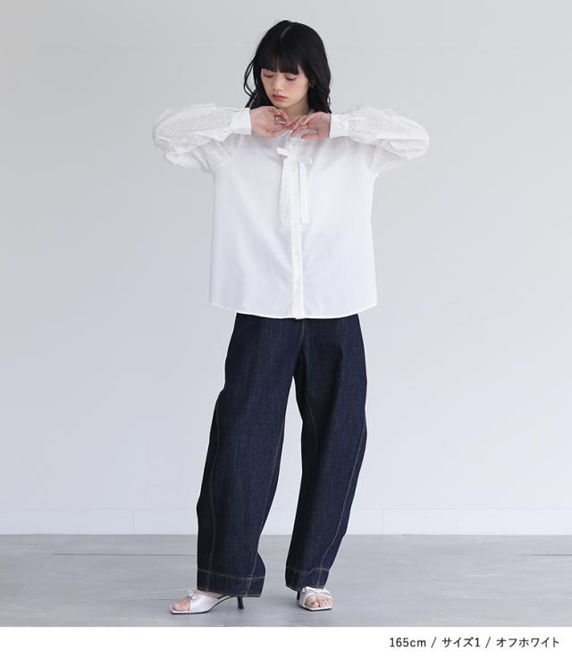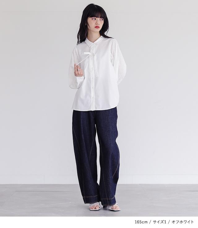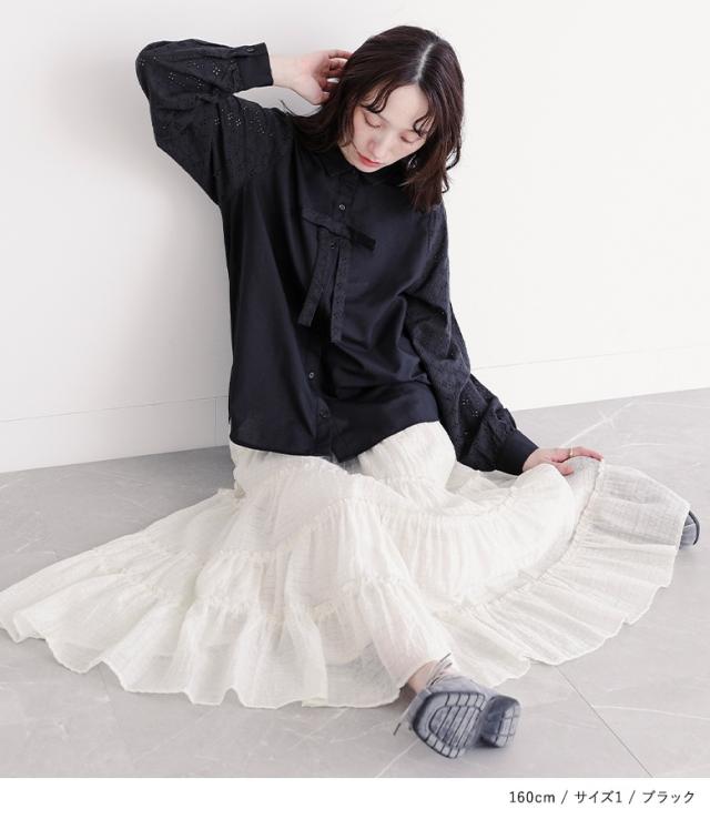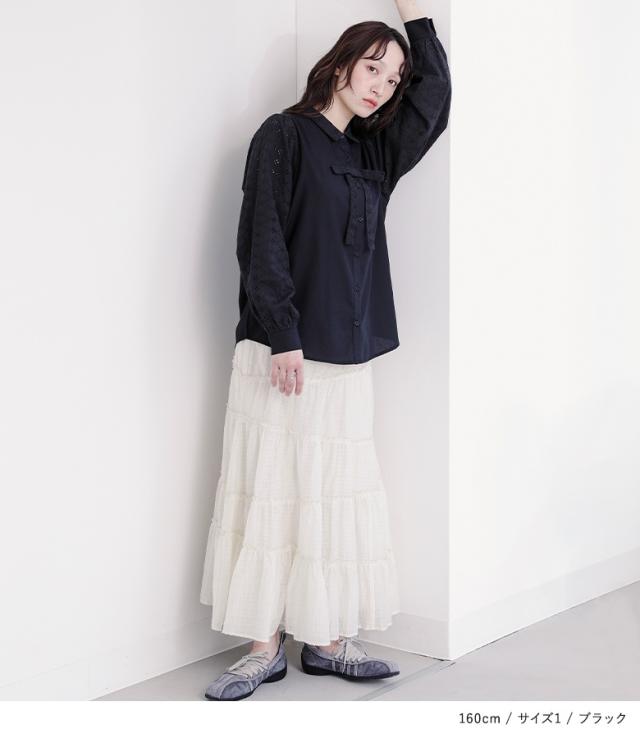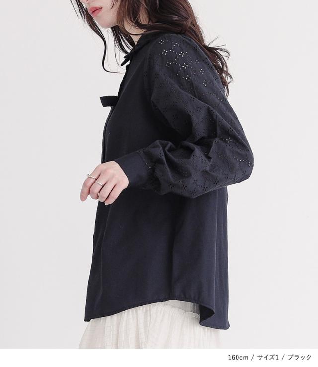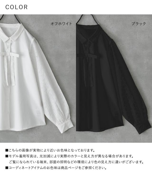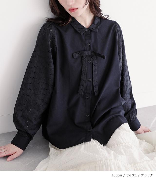 ブラウス レディース トップス 長袖 シャツ 襟付き コットンレース 切替 リボン レイヤード 重ね着 春 秋 冬 【TP】 ボタンシャツ 前開きシャツ 襟付きシャツ ホワイト 白 オフホワイト パフスリーブ ショート丈 ミディ丈 ミドル丈 切り替え 無地 レース 夏 オールシーズン カジュアル レトロ クラシカル シンプル ナチュラル キレカジ フェミニン ガーリー 二の腕カバー Sサイズ Mサイズ Lサイズ LLサイズ 3Lサイズ XLサイズ ぽっちゃり 体型カバー 大きいサイズ プラスサイズ 10代 20代 30代 40代 50代 60代 女子会 オフィス 通勤 通学 お買い物 お出掛け 旅行 リゾート レジャー おしゃれ お洒落 トレンド 流行 somari imagination ソマリイマジネーション 可愛い系 大人女子 大人可愛い お洒落可愛い 大人カジュアル 上品 きれいめ osharewalker オシャレウォーカー おしゃれうぉーかー ブラック 黒[ID]11tn0cn[somari imaginationコットンレースリボン付きブラウス]