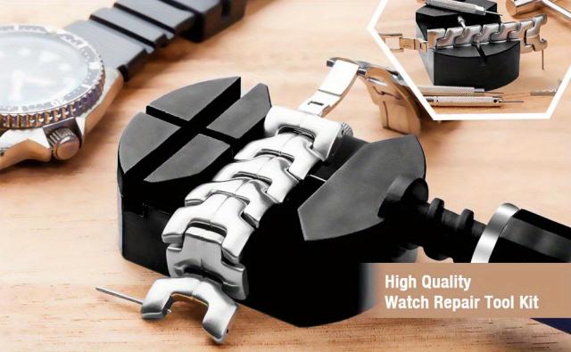 Watch Band Tool Kit Comes With A Watch Link Removal Tool, 5 Pieces Spare Pins, 3 Pieces Different Sizes Pin Punches And A Watch Hammer Great For Watch Link Removal, Watch Sizing And Watch Bracelet Replacement.