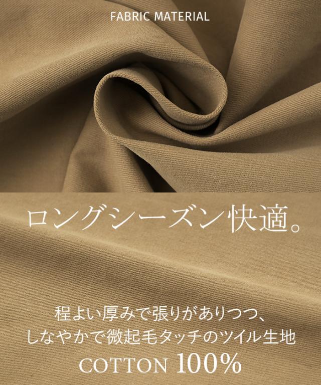 程よい張り感のある綿100%素材で着心地よくオールシーズン着用いただけます。