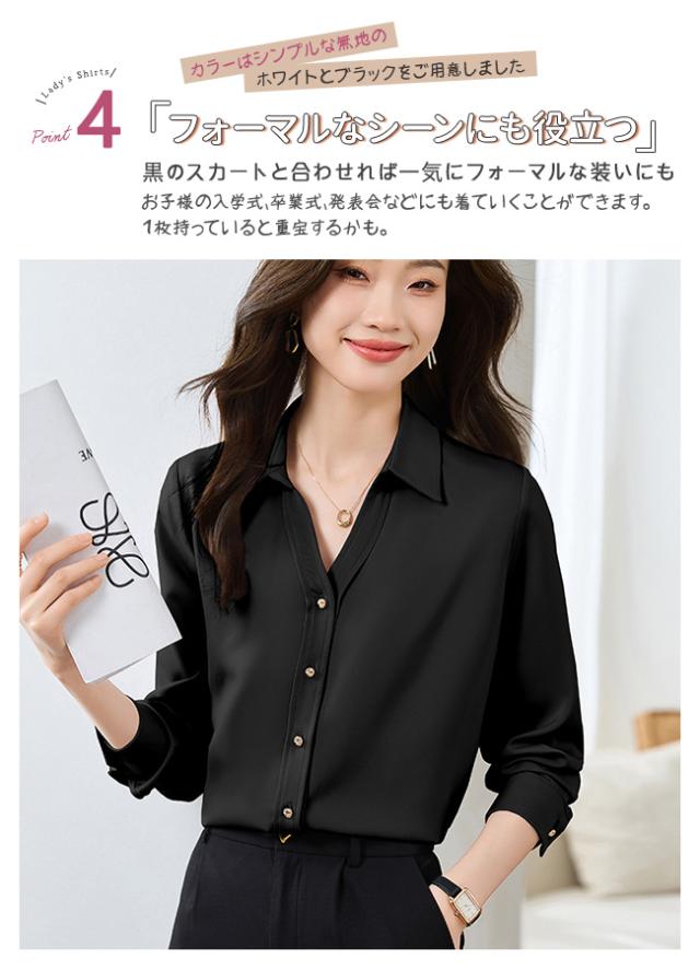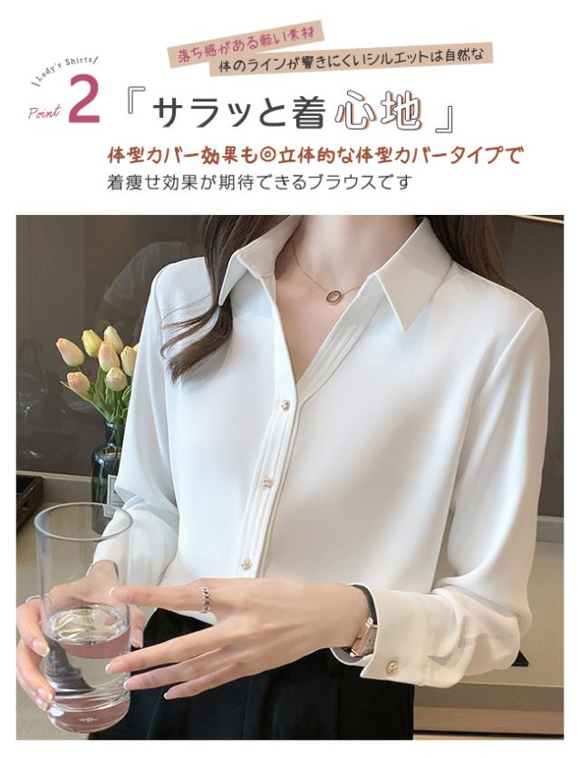 シャツ ブラウス レディース シャツ スーツ スキッパー ビジネス オフィス シャツ 就活 OL 無地 入学式 卒園式 大学 UV 紫外線カット 通勤 Vネック 春 夏