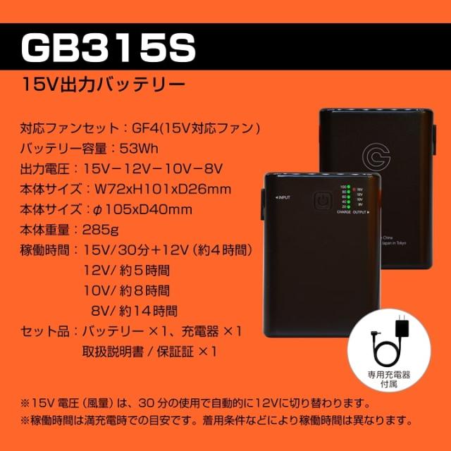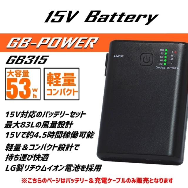 【即日発送】空調服用(15V専用 バッテリーセット単品) GB-POWER GB315 バッテリー 簡易防水 LG製リチウムイオン電池 軽量 空調ウェア ファン付きウェア対応 EFウェア 急速充電 熱中症対策 春夏 作業服 作業着 長信ジャパン