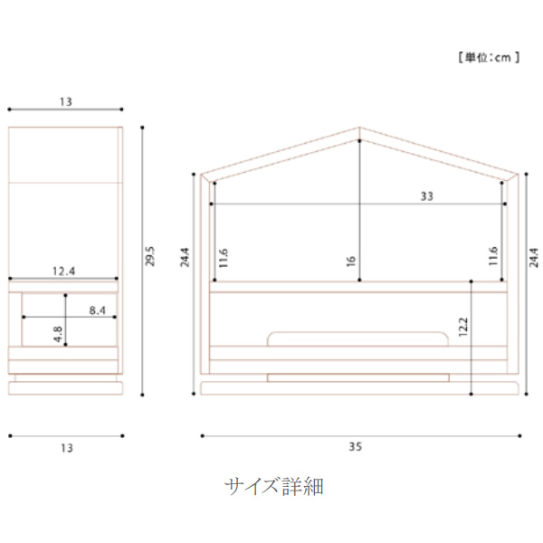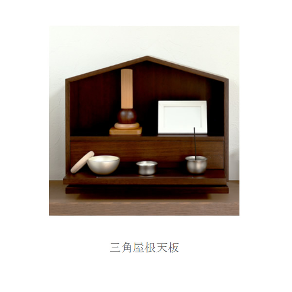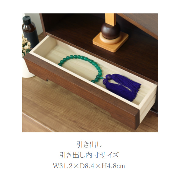 インテリアミニ仏壇【Tsuzuri- ツヅリ -】 IBA-009 ブラウン ( ウォールナット ) インテリアのようにお部屋に映えるデザインで、お部屋に馴染みやすい。 コンパクトサイズだから、 仏間や和室がない悩みを解決。 設置に大きな場所を必要としません。 ■W35.0×D13.0×H29.5cm ■天板 ・ 側板 ・ 中板 ・ 底板 ・ 土台 / 天然木化粧繊維板、 背板 ( 表面 )/ 天然木化粧繊維板、背板 (裏面) / プリント紙化粧繊維板、 引き出し : 前板 / 天然木化粧繊維板、 木枠 / 天然木 ( 桐材 )、底板 / プリント紙化粧繊維板、 ステージ : 天然木化粧繊維板 ■ウレタン樹脂塗装 ■完成品 ■中国製 ■引き出し 引き出し内寸サイズ W31.2×D8.4×H4.8cm ■スライドステージ ステージサイズ W32.9×D8.0cm( 最大に引き出した際 ) ■三角屋根天板 ※記載は商品仕様の一部です。仕様説明不足等の理由での返品はできません。特に適合等は必ずご確認ください。