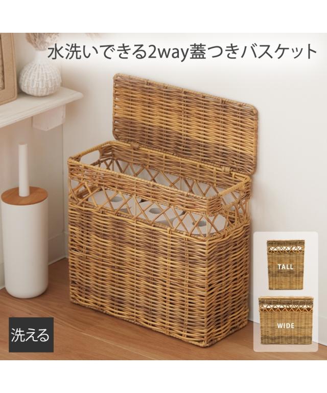 トイレットペーパーホルダー カバー 洗える トイレットペーパー 収納 として使えるスクエア バスケット 蓋つき トイレ おしゃれ トール/ワイド ニッセン nissen
