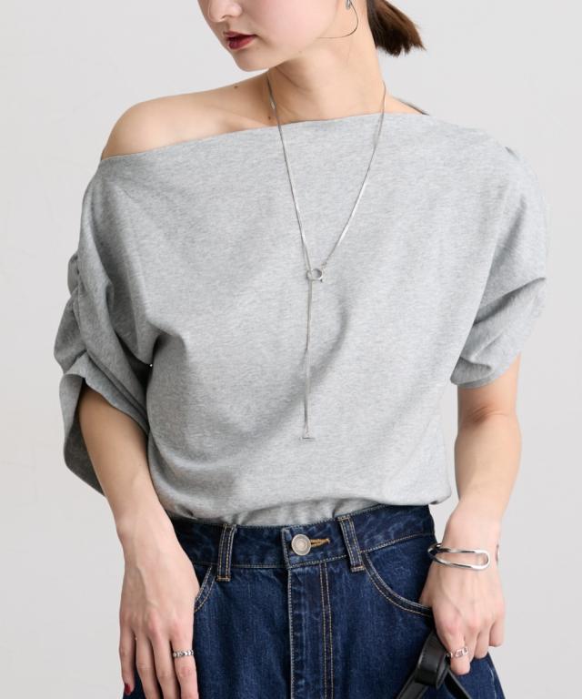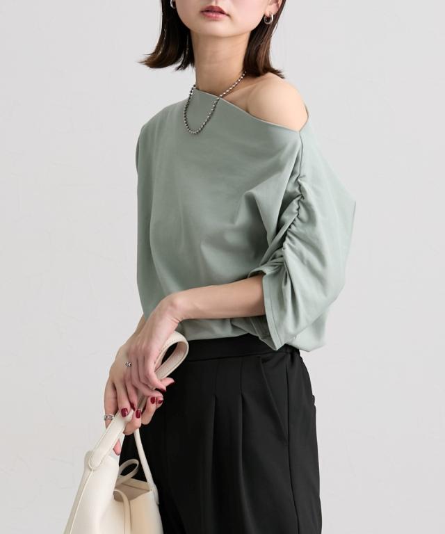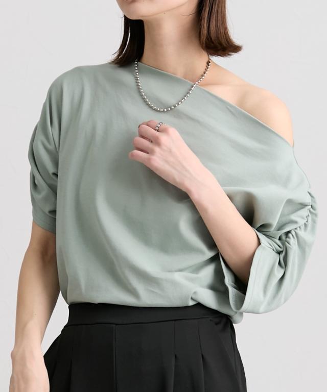 二の腕カバーの効果も有 綿100%オフショルダートップス ■デザイン ・トレンドのオフショルトップスが半袖で登場!袖部分はギャザー入のデザインで、二の腕の体型カバーにも ・露出を少なめにしたい方は肩を出さずに、ボートネック風の着用方法がおすすめ! ・袖のギャザーデザインのインパクトで、シンプルなTシャツにもポイントに ■素材 綿100%のカットソー素材です ■おすすめのスタイリング キレイめなコーデからカジュアルコーデまで幅広く着合わせOK 着合わせるボトムもパンツスタイルからスカートスタイルまで対応可能!もちろんキャミOPなどを着合わせても可愛いです コンパクトめな着丈設定なので、インもしやすく、スタイルアップしてすっきりとpした着こなしが可能! ーーー明日ちょっと褒められる服ーーー 大人トレンドを意識したこだわりのアイテムと着こなしでアナタの毎日に輝きを。 ただシンプルできれいなだけじゃ物足りない。 カジュアルすぎず、スタイリッシュで大人の品性を感じる着こなしに。 そんな、こなれたオシャレを楽しむ女性に寄り添う、 新鮮なリアルクローズをご提案します。