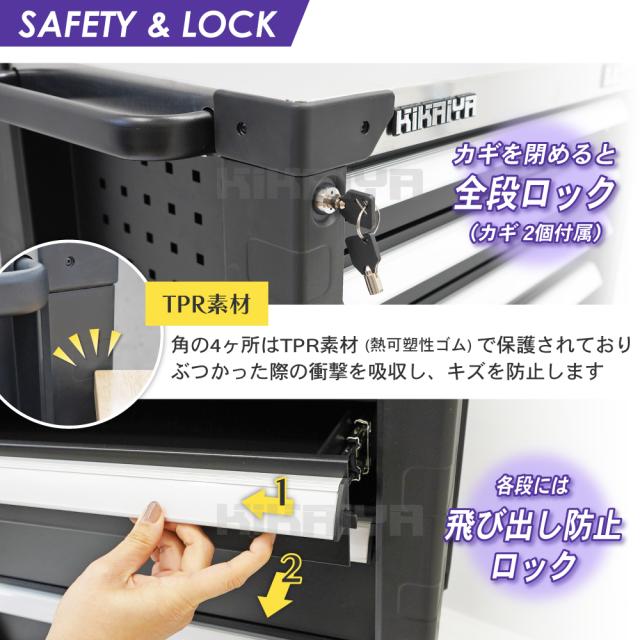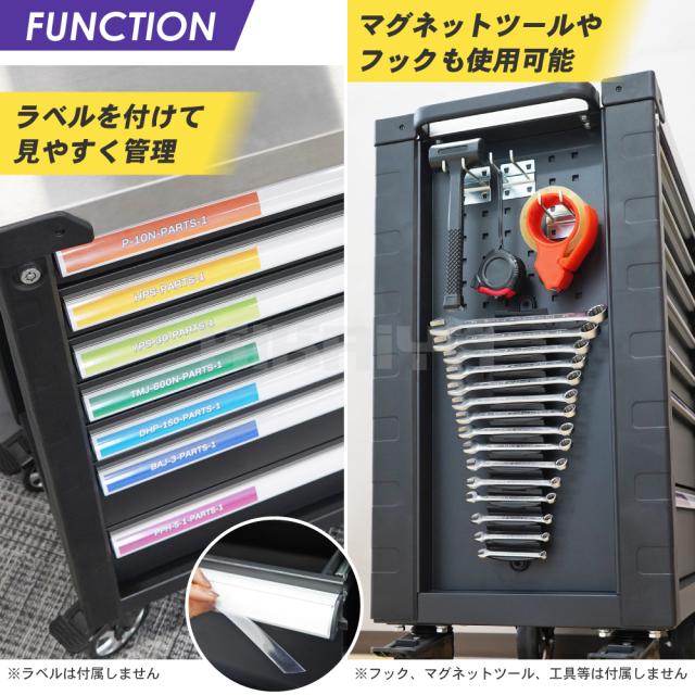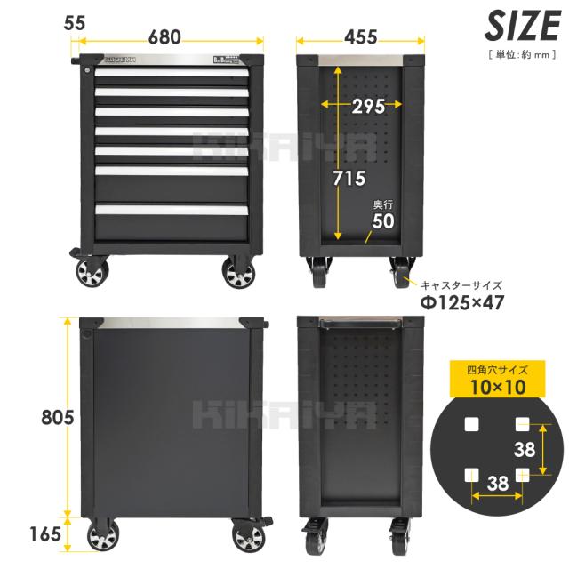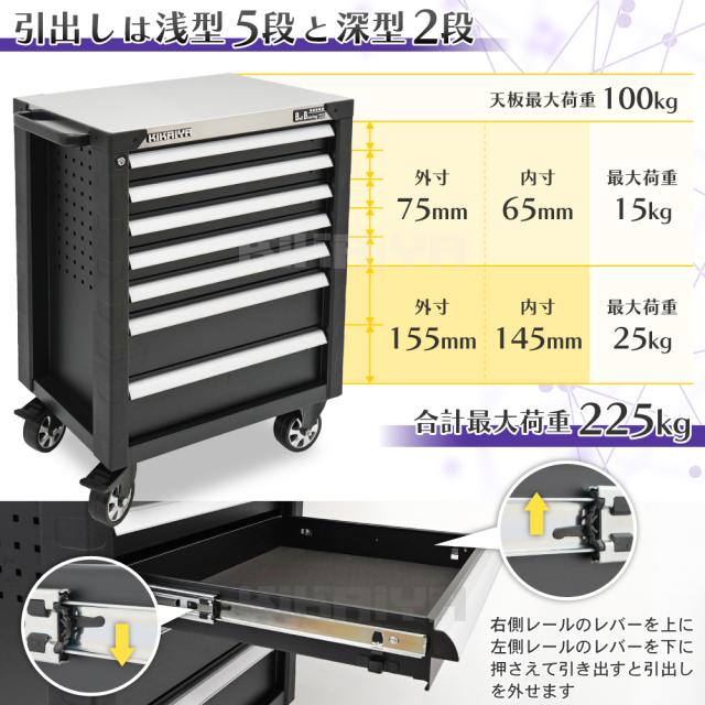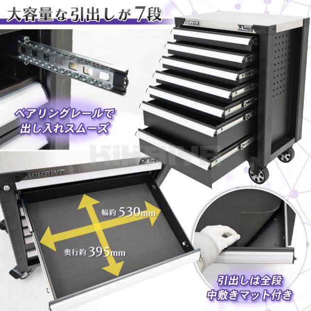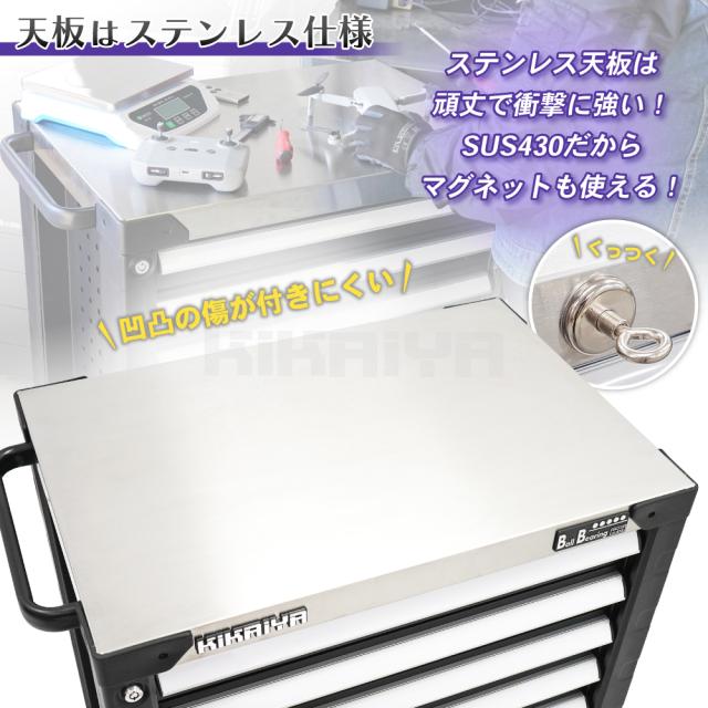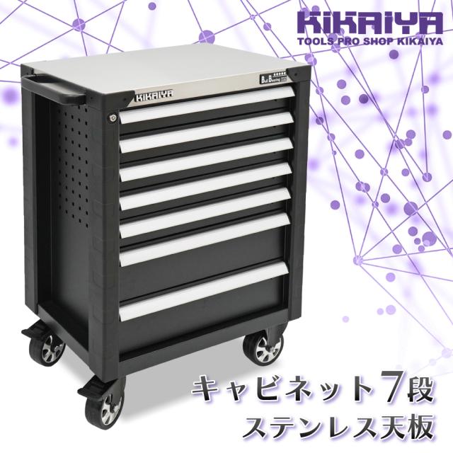 ローラーキャビネット 7段 ステンレス天板 ブラック 頑丈 高耐久 ロールキャビネット 作業台 ツールキャビネット ワゴン 工具箱 KIKAIYA