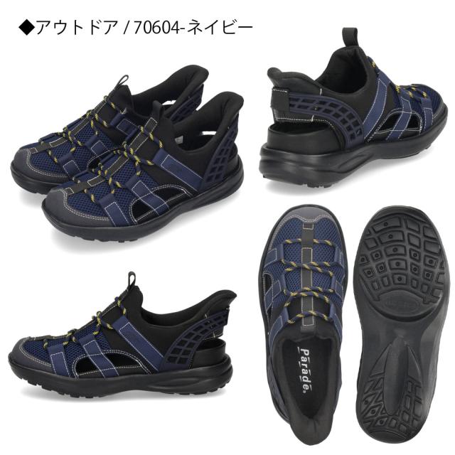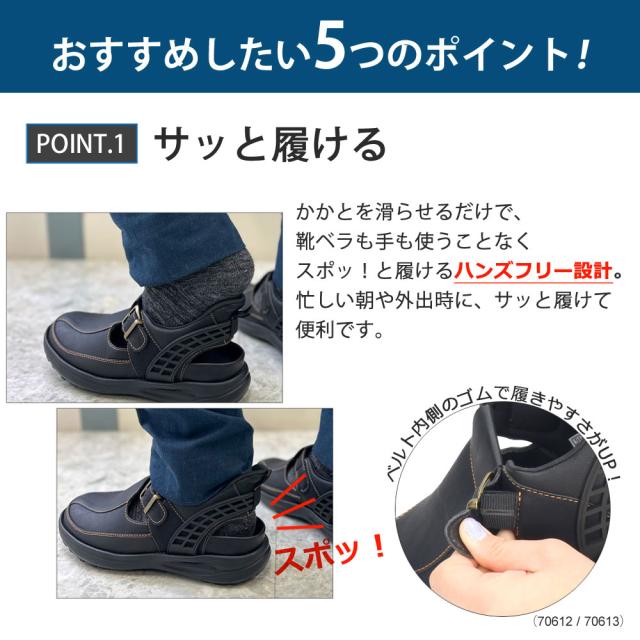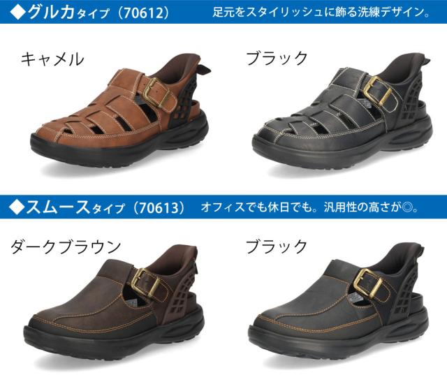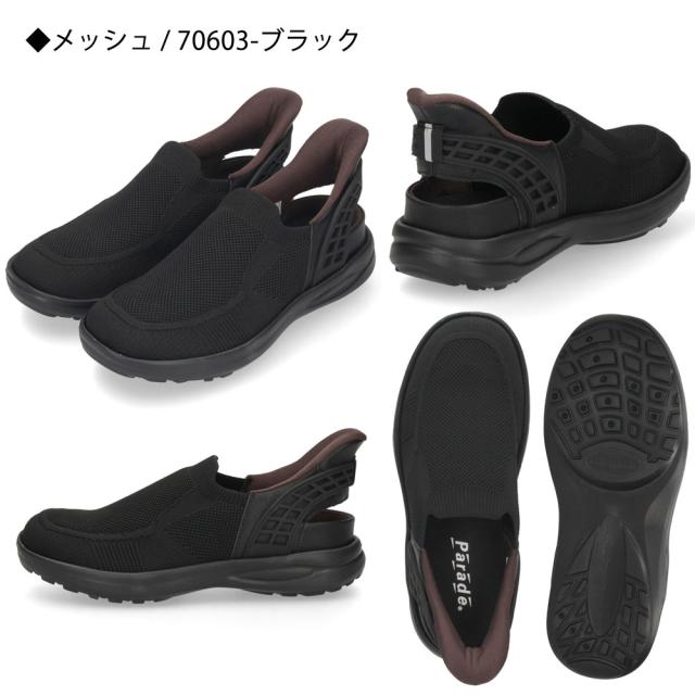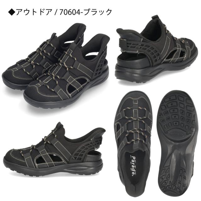 メンズ サンダル かかと付き 手を使わず履ける シューズ カジュアル おしゃれ 履きやすい ハンズフリー 靴 スポーツサンダル グルカサンダル 黒 Parade 楽すぽっ 70603 70604 70612 70613