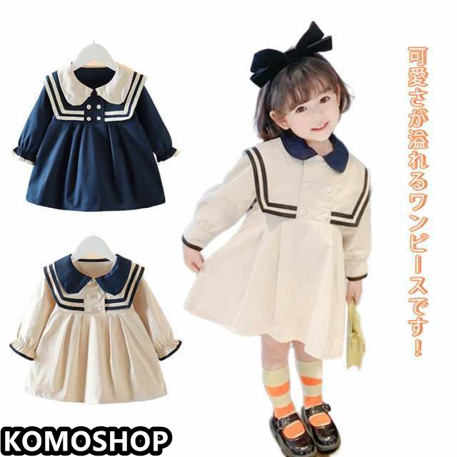 ワンピース 入園式 女の子 ベビー ワンピース 長袖 フォーマル 春夏秋 お受験 ワンピース 子供服 膝上 かわいい ライン入りワンピース 子