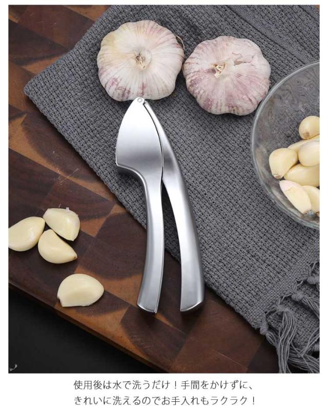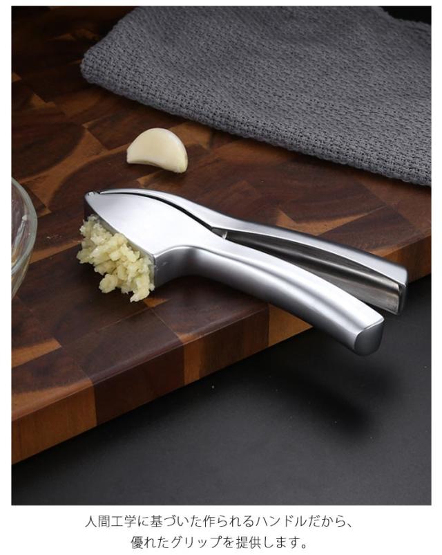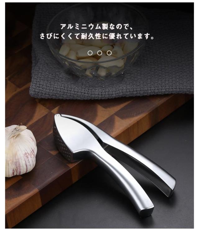 | 手を汚さず楽に潰せるのでとても便利なガーリックプレスです。 一度に3-4クローブのニンニクを入れてください。 ニンニクを挟んでギュっと握るだけで簡単にニンニクペーストが出来上がります。 アルミニウム製なので、さびにくくて耐久性に優れています。 人間工学に基づいた作られるハンドルだから、優れたグリップを提供します。 使用後は水で洗うだけ!手間をかけずに、きれいに洗えるのでお手入れもラクラク! ニンニクを搾るだけではなく、生姜やオクラ、小玉ねぎなども作ることができます。 | |