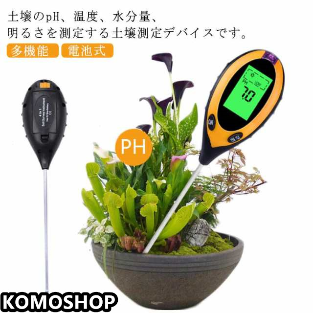土壌酸度計 デジタル 家庭菜園 ph測定器 マルチ 4in1 初心者 酸度 水分 pH計 栽培 園芸 植物育成 多機能 使い方 土壌測定器 ペーハー測定器 土壌測定器 土壌水分計 メーター 水分量 畑 土壌テスター 照度計 土づくり 土質改善