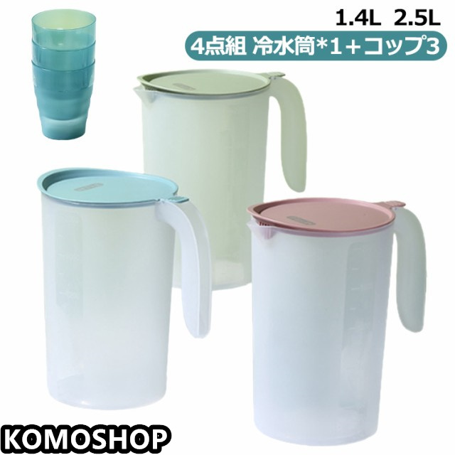 冷水筒 ピッチャー ジャグ 麦茶ポット 卓上ポット 1.4l 2.5l 2.5リットル ピッチャー 4点組 冷水筒*1+コップ3 水差し プラスチック 麦茶 ポット テーブルポット 広口 洗いやすい ギフト プレゼント 送料無料
