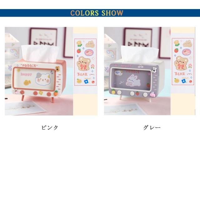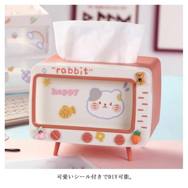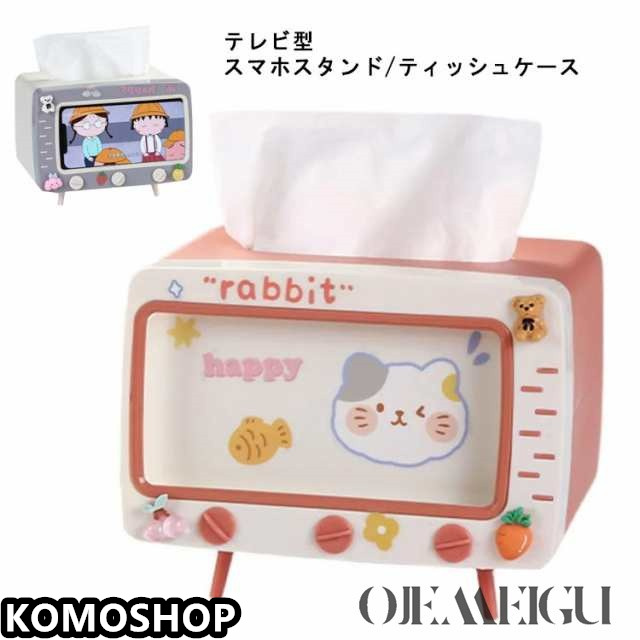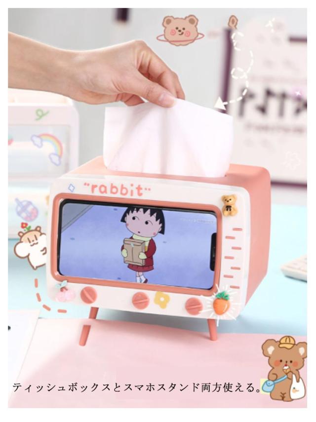 スマートフォンスタンド付き テレビ型 2in1 ティッシュケース スマホスタンド ティッシュボックス かわいい シール付き
