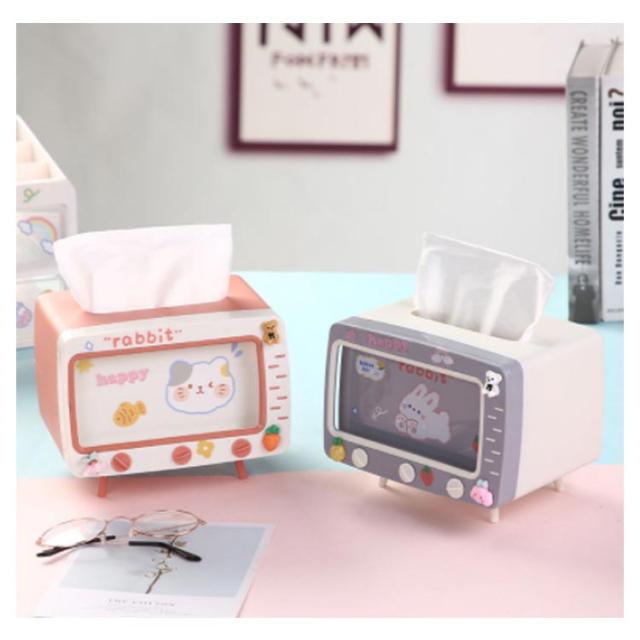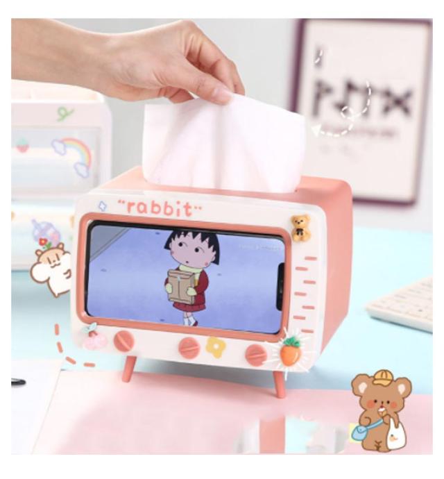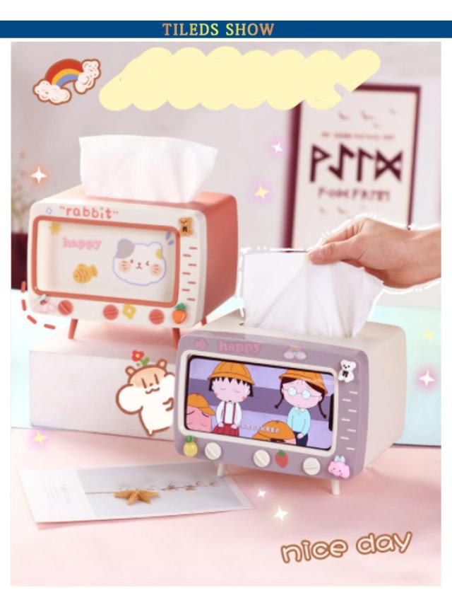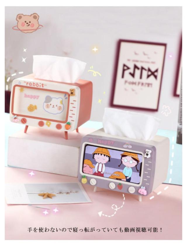 | ティッシュボックスとスマホスタンド両方使える。 可愛いテレビデザインインテリアとしても素敵。 手を使わないので寝っ転がっていても動画視聴可能! 可愛いシール付きでDIY可能。 | |