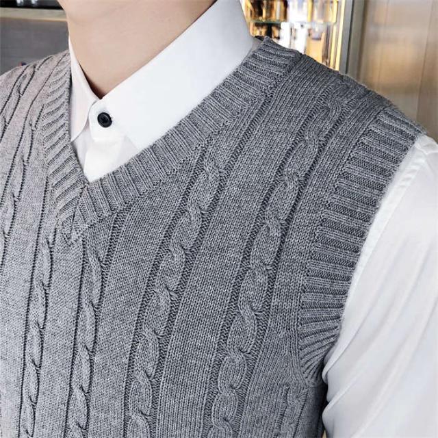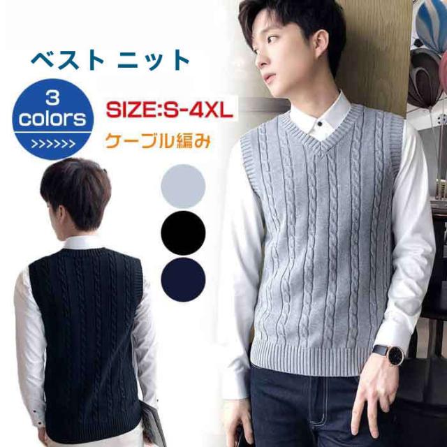 メンズベスト ニットベスト ケーブル編み Vネック 袖なし秋冬 トップス ファッション カジュアル オシャレ ビジネス