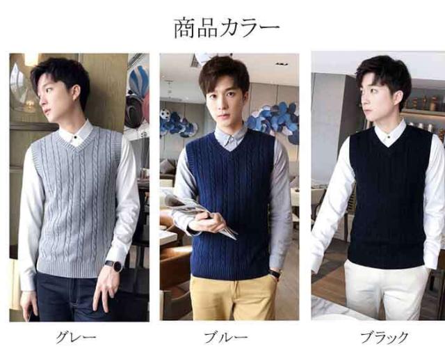 商品名:メンズベスト ニットベスト ケーブル編み Vネック 袖なし秋冬 トップス ファッション カジュアル オシャレ ビジネス スタイル 通勤 通学 無地 シンプル 単色 重ね着 レイヤード ビジカジ ギフト 送料無料