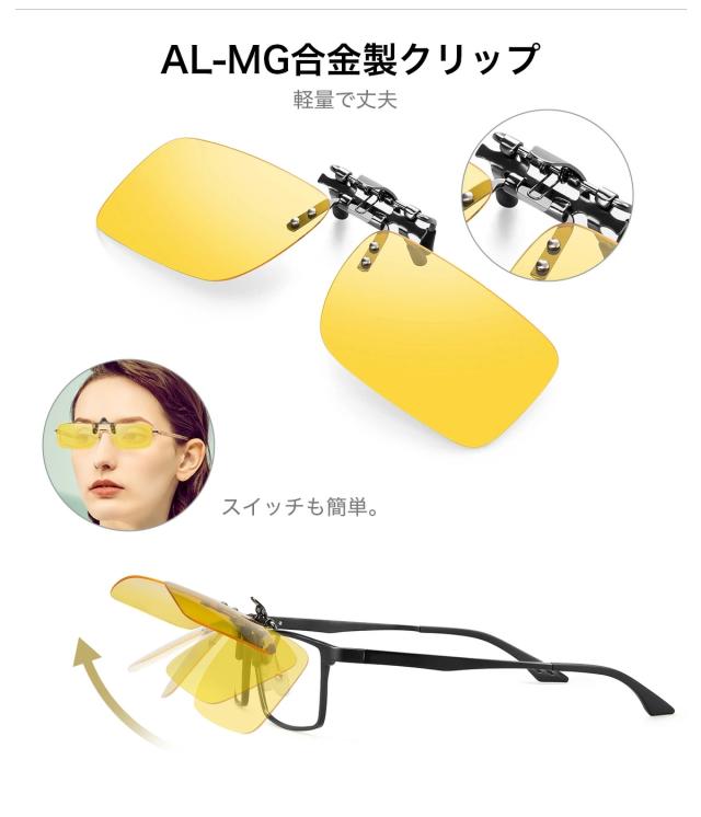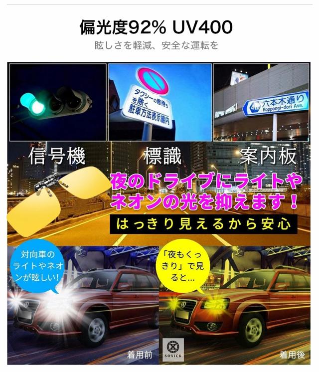 夜用 雨天用 メガネ 夜間用 サングラス クリップ ナイト グラス 夜用 夜釣り ナイト ドライブ 偏光レンズ めがね 雨天 雨 夜間 soxick 車 自転車 長距離 運転 防眩 夜 見える ドライブ 眩しい 軽減 レンズ 眼鏡 おすすめ 夜間運転 父の日 ギフト 送料無料