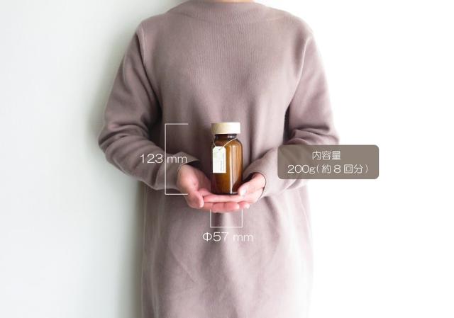 1瓶あたり容量200gで約6回程の入浴が楽しめる。フタを取り適量約30〜50gを浴槽の中に入れ、よくかき混ぜてからご入浴下さい。 |