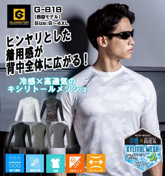 グラディエーター GLADIATOR ドライパワーサポート長袖 インナー G-818 サイズS〜XL 接触冷感 UVカット コーコス CO-COS