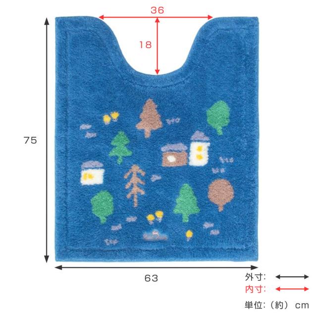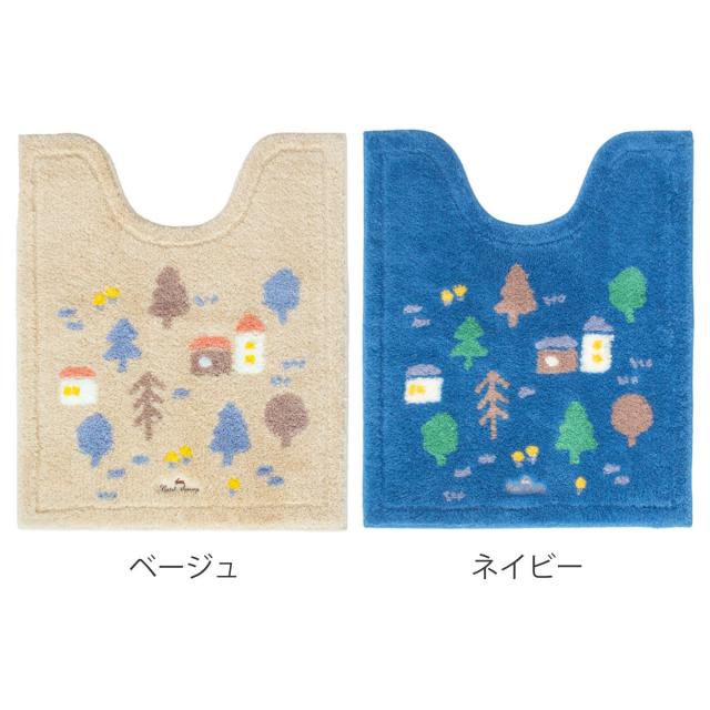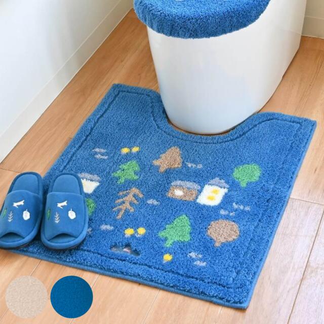 トイレマット ナタルシーナリー 約75×63cm ロングトイレマット ( トイレ マット 足元マット ロング 滑り止め 洗濯OK トイレタリー すべり止め 丸洗い 75×63 北欧 ベージュ ネイビー )