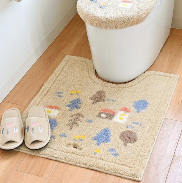 「ナタルシーナリー」シリーズのトイレマットです。マットの毛足は短めで、程よい踏み心地が足元からほっこりさせてくれます。汚れが気になったら、ネットに入れて洗濯機で丸洗いできるので、お手入れ簡単です。