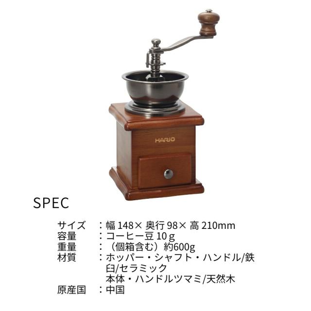 ハリオ コーヒーミル・スタンダード MCSR-1 コーヒーミル 手動 臼 手挽き おしゃれ 珈琲 珈琲豆 挽き器