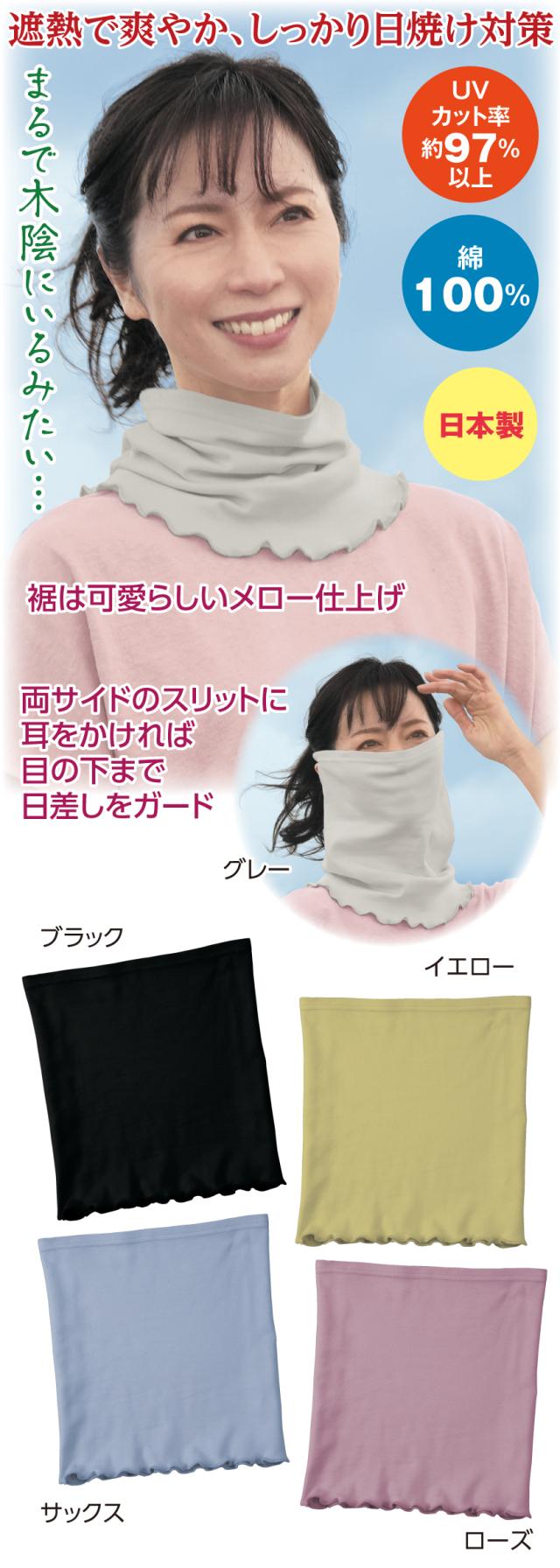 まるで木陰 フェイスカバー ネックカバー 日除け 日本製 綿100% UVカット レディース ミセス シニア おしゃれ ファッション 40代 50代 60代 70代 80代 母の日 春物 夏物 春夏 爽やか 涼しい 遮熱