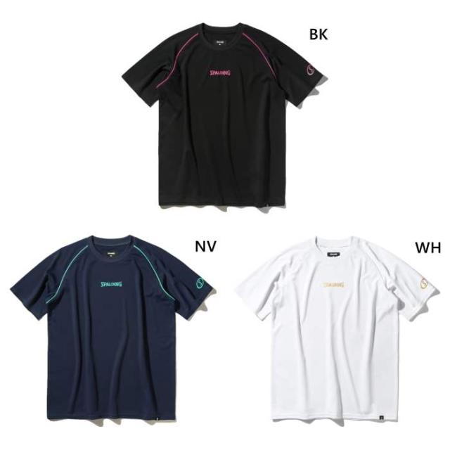スポルディング メンズ レディース バレーボール Tシャツ パイピング ロゴ バレーボールウェア トップス 半袖Tシャツ ブラック 黒 ネイビー 送料無料 SPALDING SMT25021V