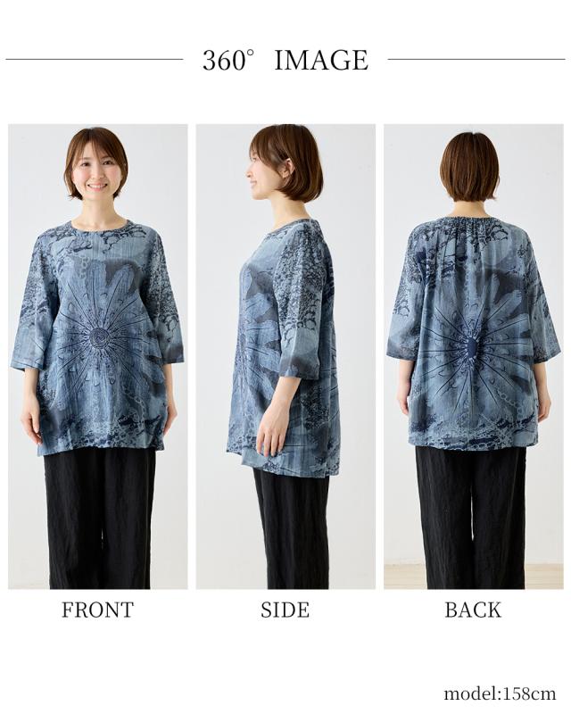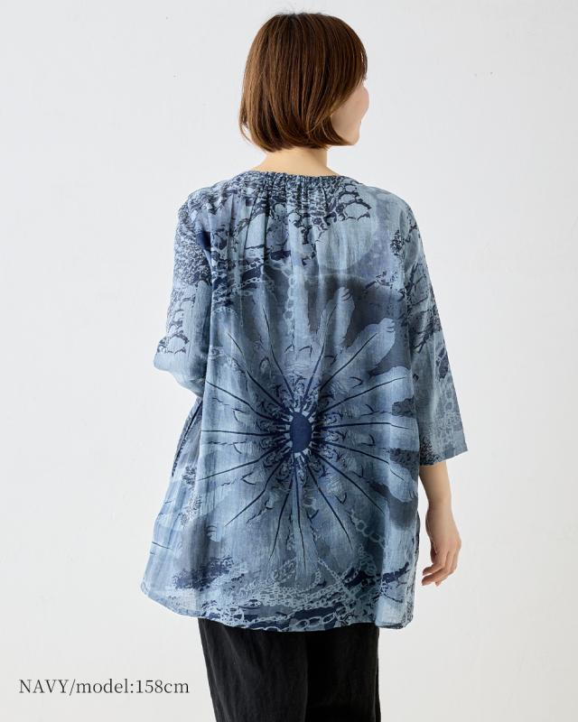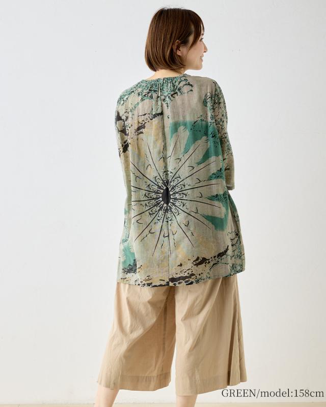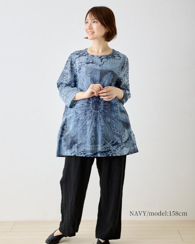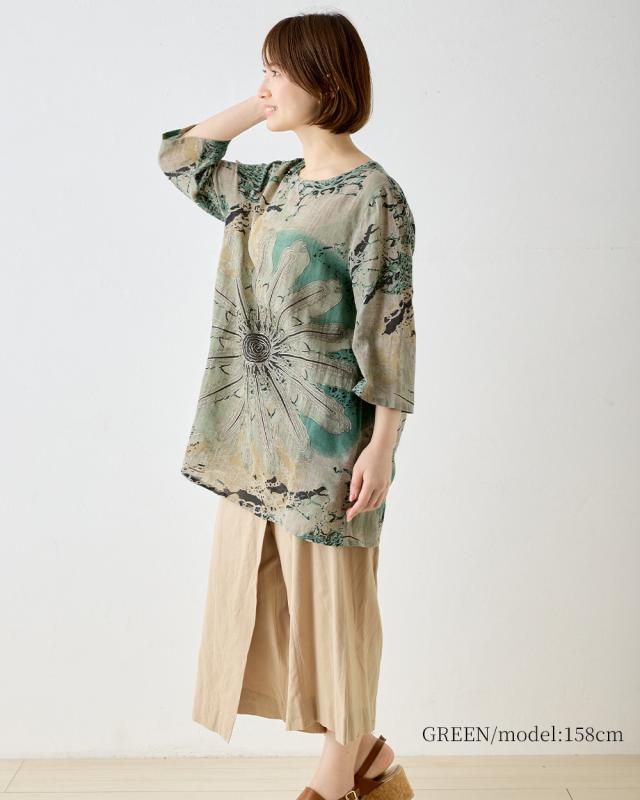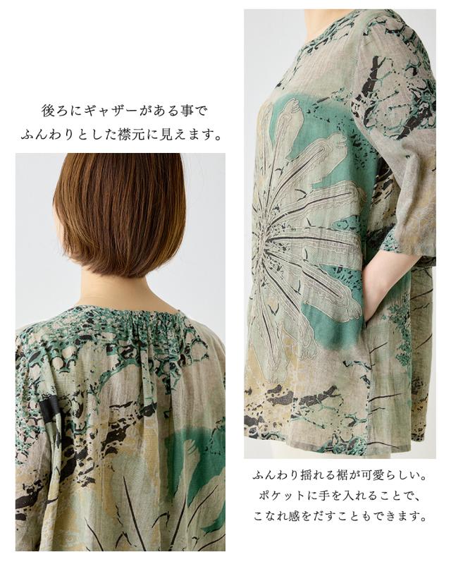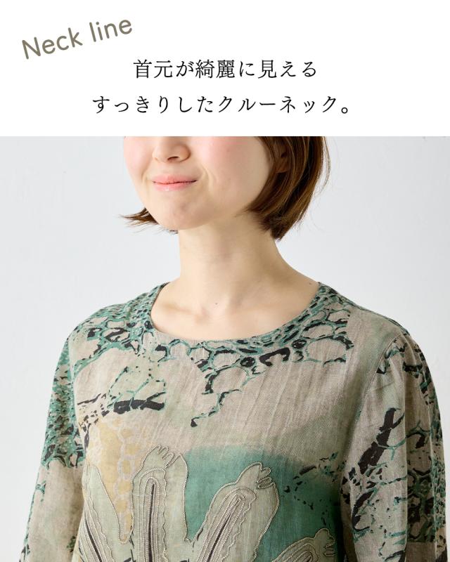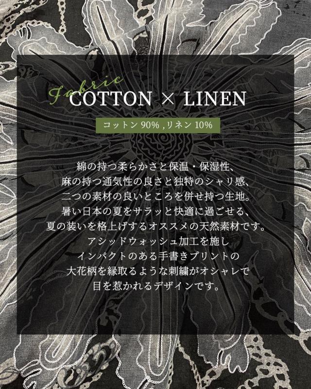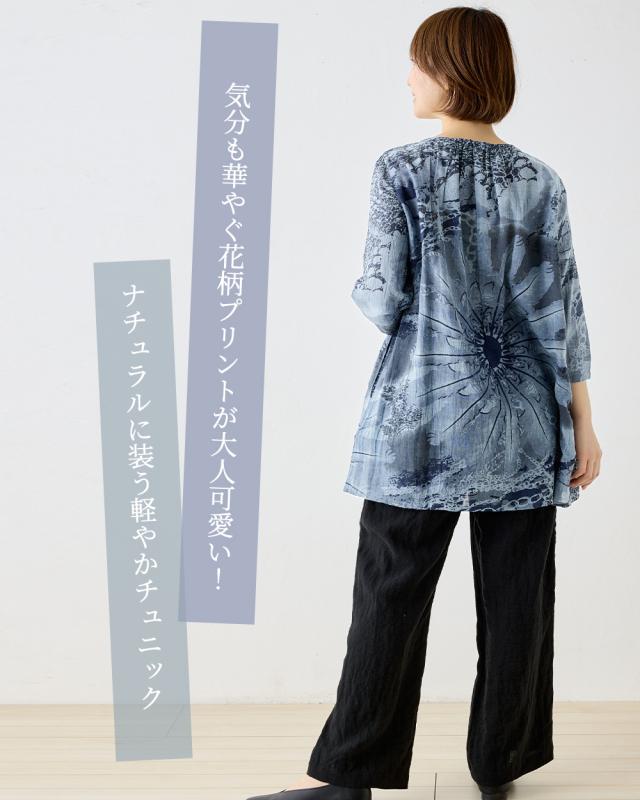 コットンリネンのべた付かずさらりと着られる生地感と、こだわりのプリントで快適もオシャレも叶います。