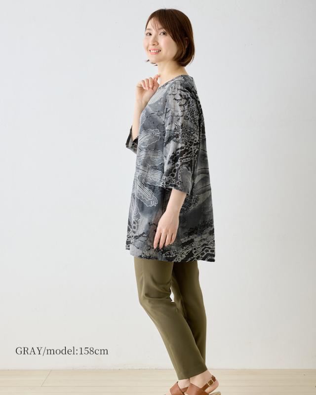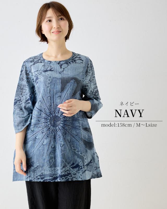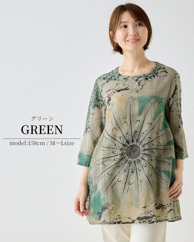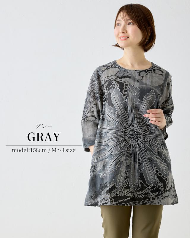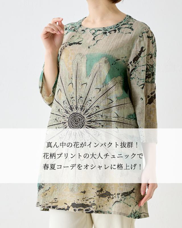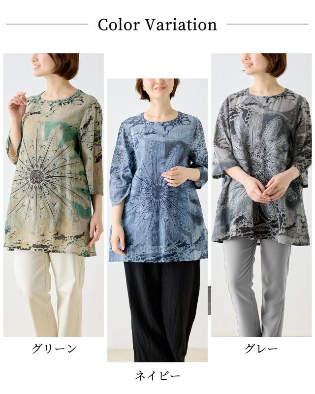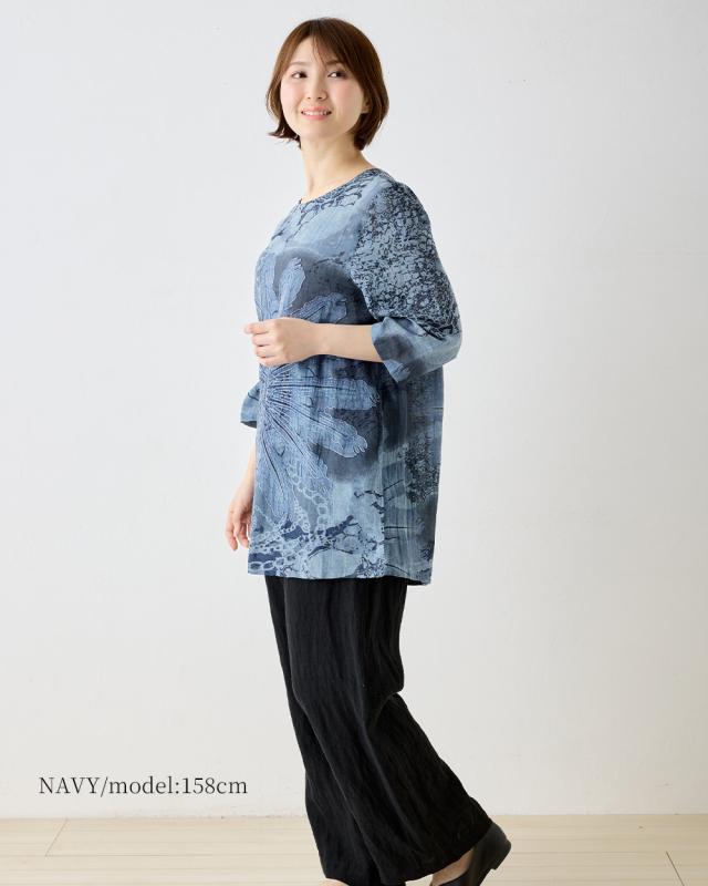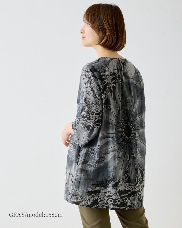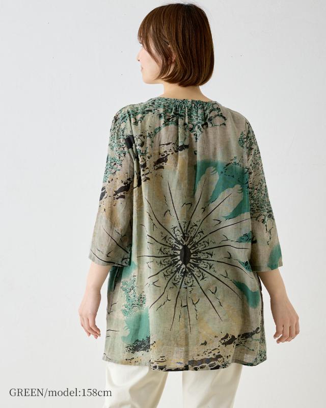コットンリネンのべた付かずさらりと着られる生地感と、こだわりのプリントで快適もオシャレも叶います。