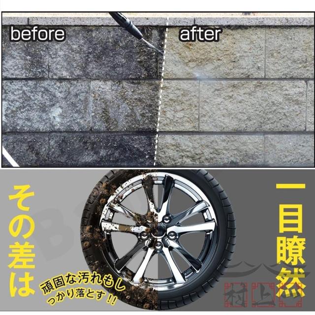 6-in-1多機能延長ノズル付き、0°/15°/25°/40°/シャワー/ストレートの六つ水噴射モードがある、使用シーンに合わせて選択できてとても便利です。3段階調節できる8-10MPaほどの吐出圧力、大掃除や洗車に便利な高圧洗浄機です(水圧がある程度高いと、汚れも落ちやすくなるので、8MPa以上のモデルお勧めします)コケなど頑固な汚れ、ベランダや網戸、ドアサッシ、室外掃除、お風呂や室内掃除などカンタンに掃除できます。