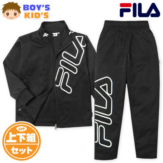 【送料無料】男児 キッズ FILA/フィラ 長袖 ウォームアップスーツ 上下組 ジャージ ロゴ プリント 刺繍 子供服 男の子 110cm 120cm 130cm iw-1249b-bk