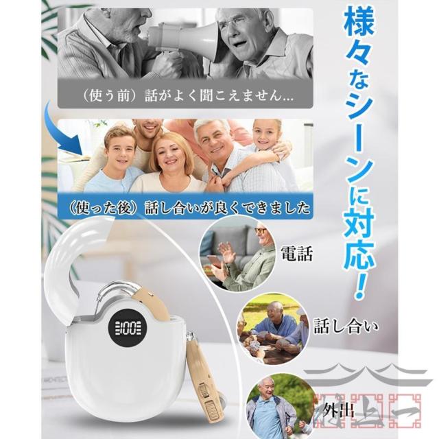 【超軽量で使いやすい】軽量な設計により、片方の集音器はわずかの5.3gで、長時間着用しても不快感を最小限に抑えることができます。デジタルな数字で残る電量を表示され、電量状況をいつでも一目で確認できます。