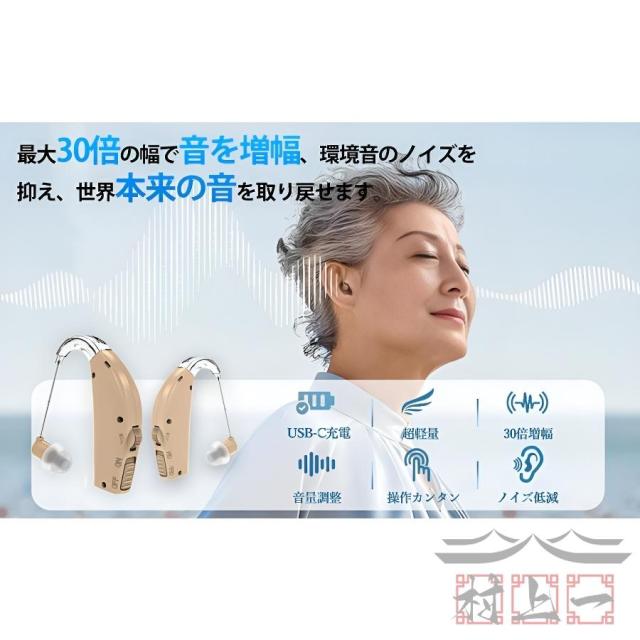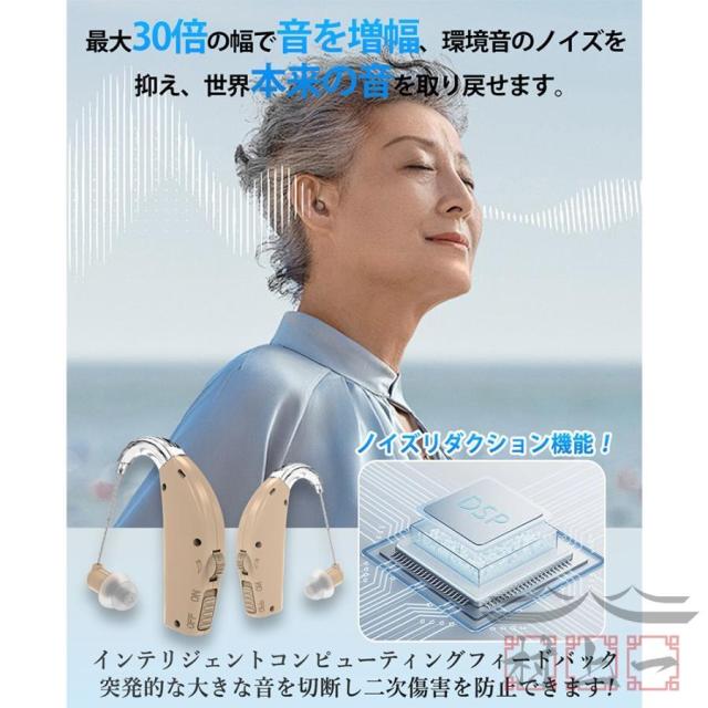 【音を30倍増し】最新の伝導技術を搭載、環境音のノイズを抑えながら、最大30倍の幅で音を増幅する。この集音器には物理的なボタンもあり、無段階音量調整でき、自由で元の世界の音を取り戻せよ。