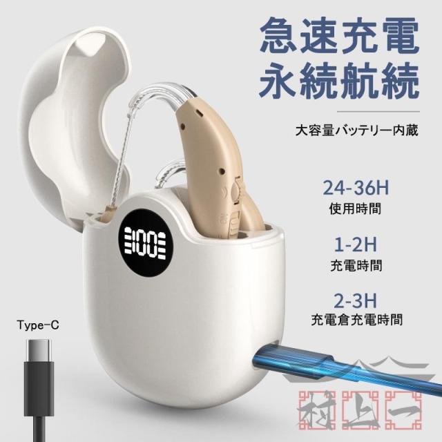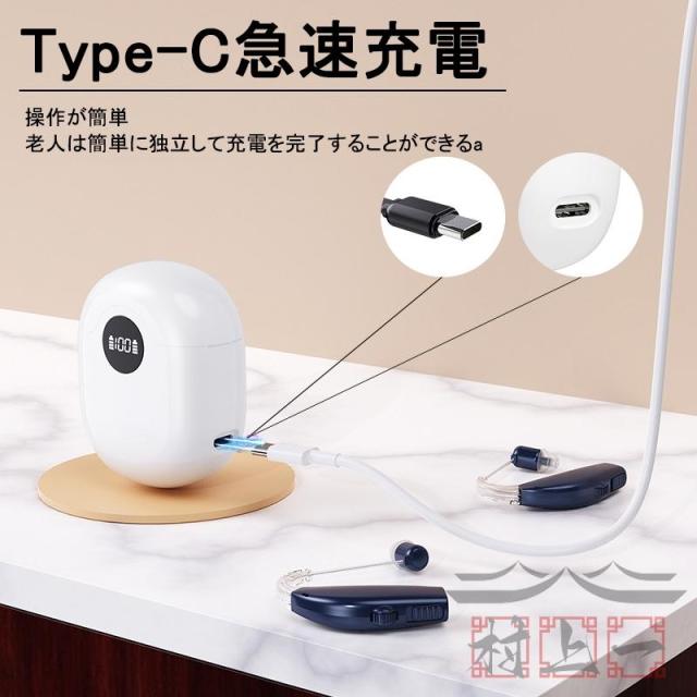 【USB充電式&収納ケース付き】集音器にはUSBのType-Cケーブルがつきましており、簡単に充電できる利便性に加えて、専用の収納ケースが付属します。100分でケースを充電完成、完成したら三回まで集音器を充電できます。