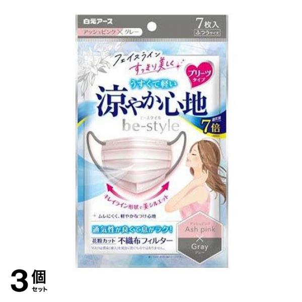 3個セット ビースタイル マスク プリーツタイプ 涼やか心地 アッシュピンク×グレー 7枚入