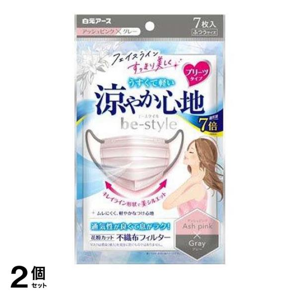 2個セット ビースタイル マスク プリーツタイプ 涼やか心地 アッシュピンク×グレー 7枚入