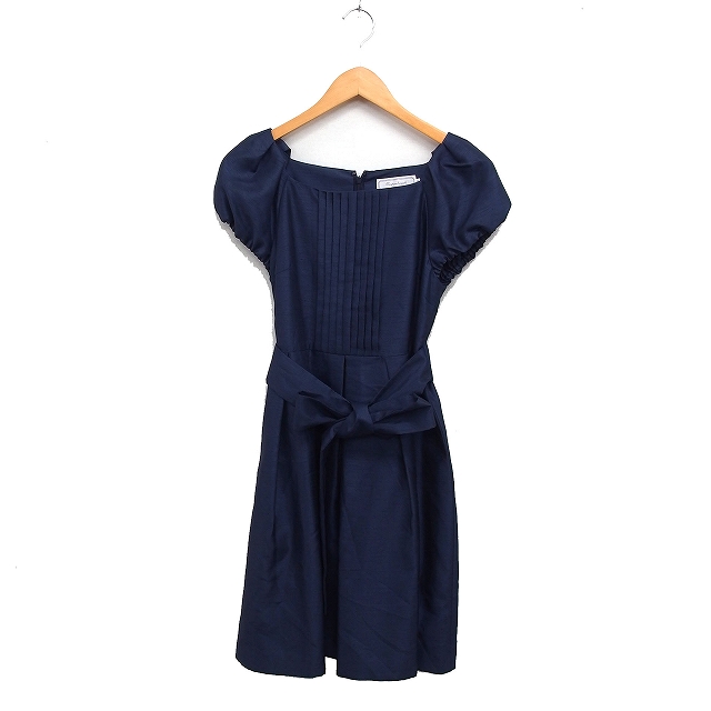 【中古】クチュールブローチ COUTURE BROOCH フォーマルワンピース パフスリーブ ひざ丈 リボン 光沢 38 ネイビー