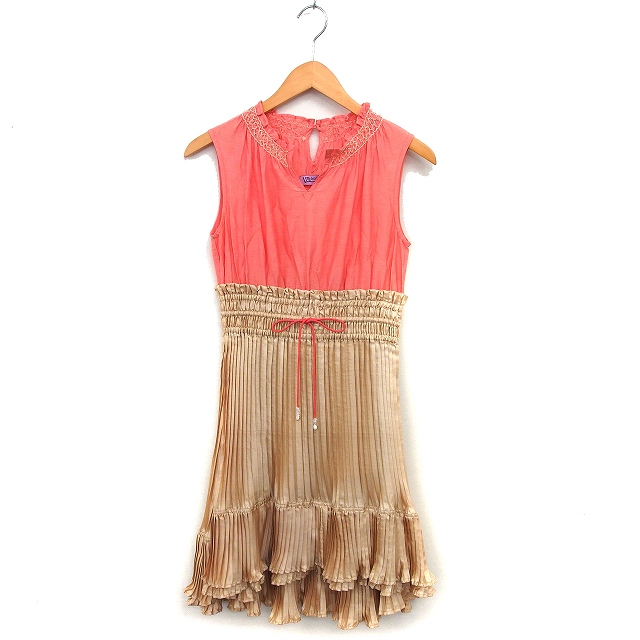 【中古】ヴェルニカ Velnica ワンピース プリーツ フレア ひざ丈 シルク シャーリング ノースリーブ ピンク ベージュ