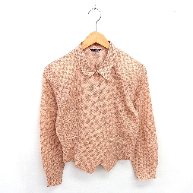 【中古】コルディア CORDIER シャツ ブラウス ステンカラー 総柄 肩パッド 薄手 長袖 40 ベージュ 茶 /TT レディース
