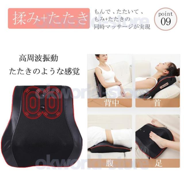 色々なシーンで活躍/三段階調節/ヒーター付/家庭?車載両用可能/コンパクト/簡単操作/3D揉み玉/人の手を模擬する/温熱機能/スマホ首を予防する/タイマー/人体工学設計/多機能/通気性良い/変形しにくい