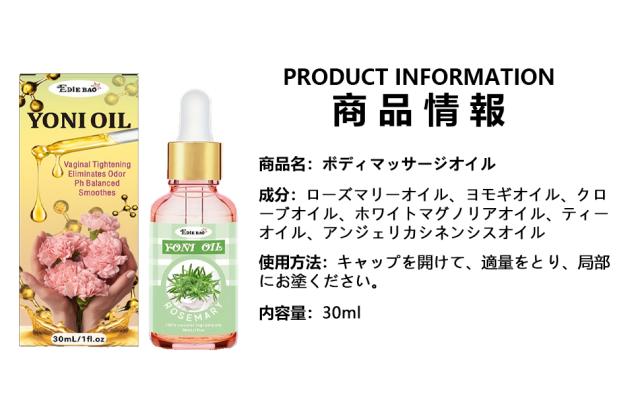 オイル アロマ マッサージ、ローズマリーの香り、100%天然ヨニオイル、デリケート ゾーン オイル おすすめ、女性用保湿ボディオイル、ボディオイル 良い香り、ラブ マッサージ オイル 30ml【シートマスク 2枚プレゼント】
