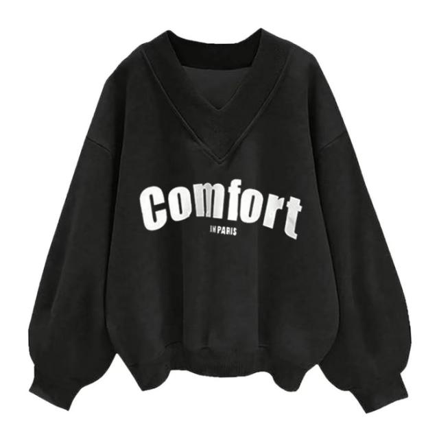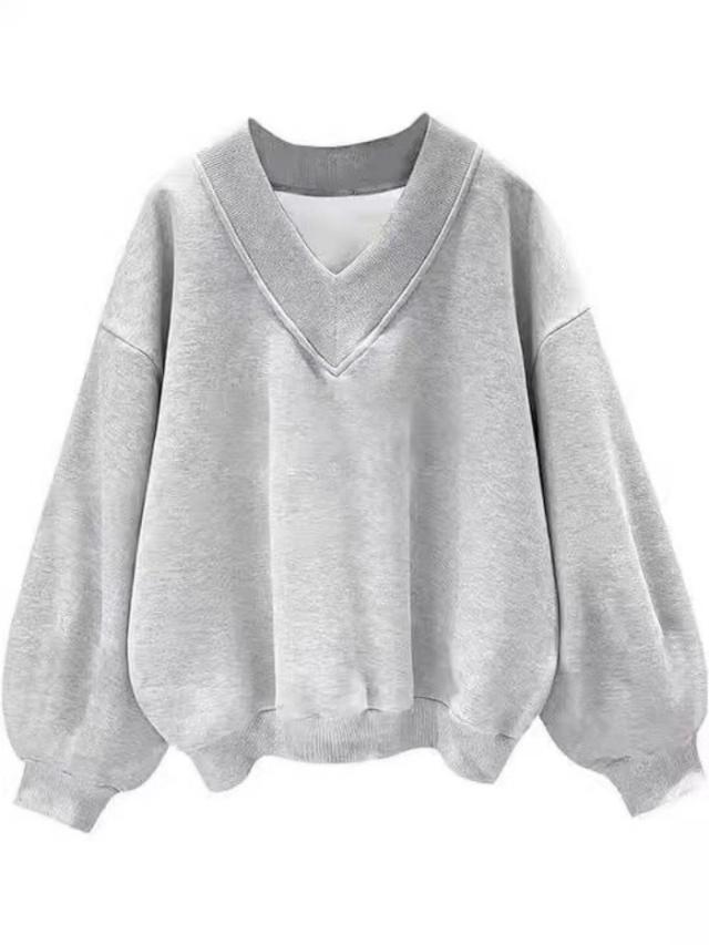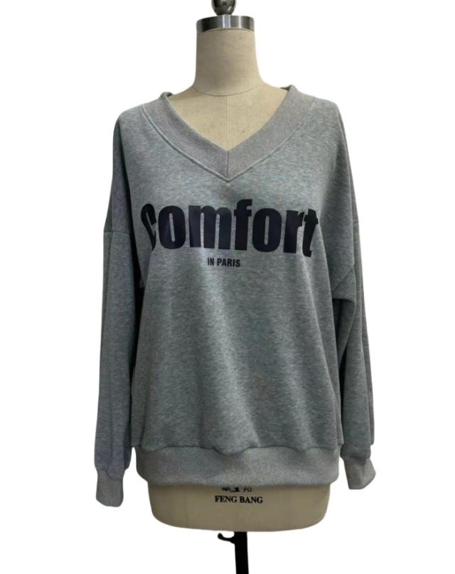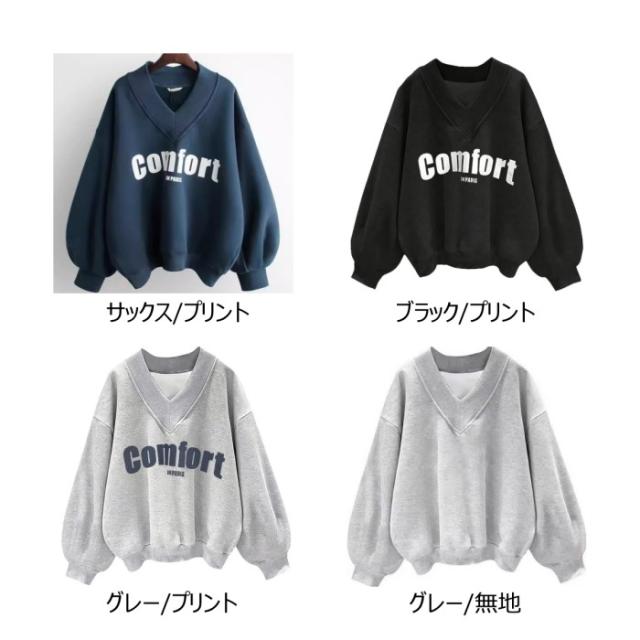 トレーナー Vネック プリントor無地 パーカー レディース 綿 オーバーサイズ レディース服 プルオーバー ビッグシルエット コトン トップス トレーナー カジュアル ゆったり
