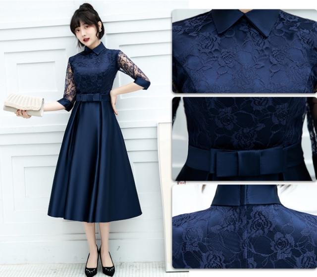ドレス パーティードレス 結婚式 ワンピース ドレス 袖あり 大きいサイズ ワンピースフォーマルドレス フォーマル お呼ばれ 服 親族 大きいサイズ 大人 上品 20代 30代 40代 50代 卒業式 二次会 披露宴 お呼ばれ 上品 膝下 体型カバー