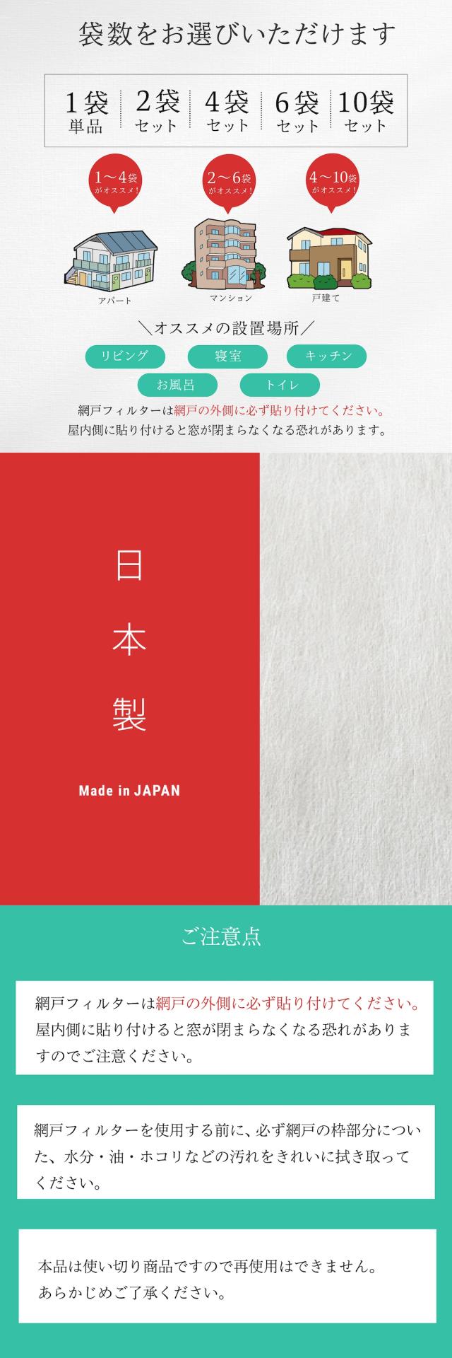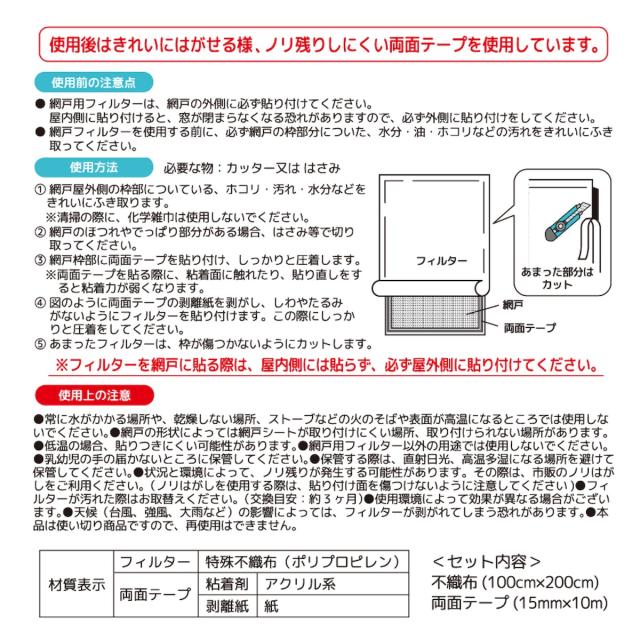 ■素材・成分:(フィルター)特殊不織布ポリプロピレン・(両面テープ)粘着剤アクリル系・(剥離紙)紙