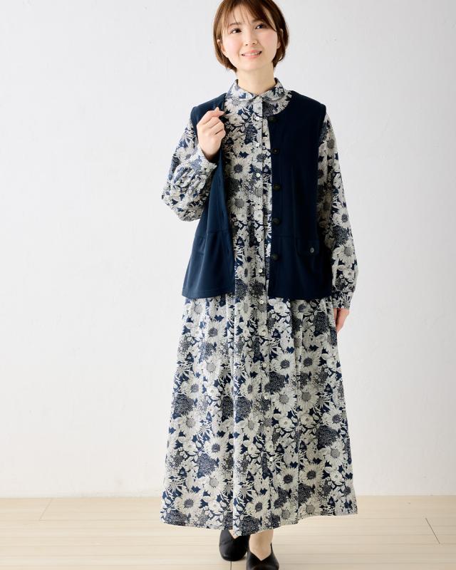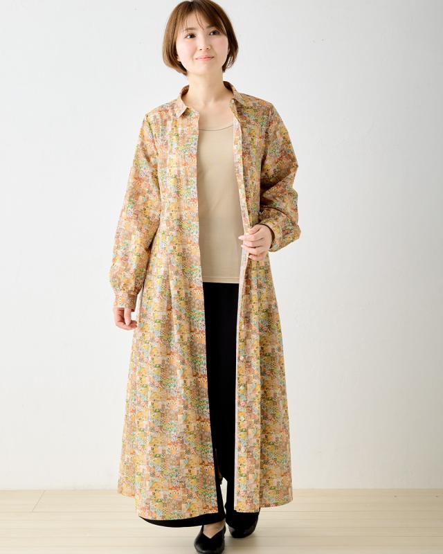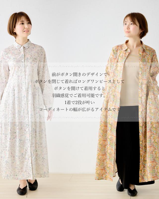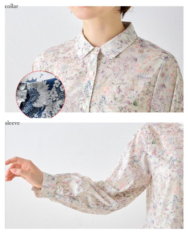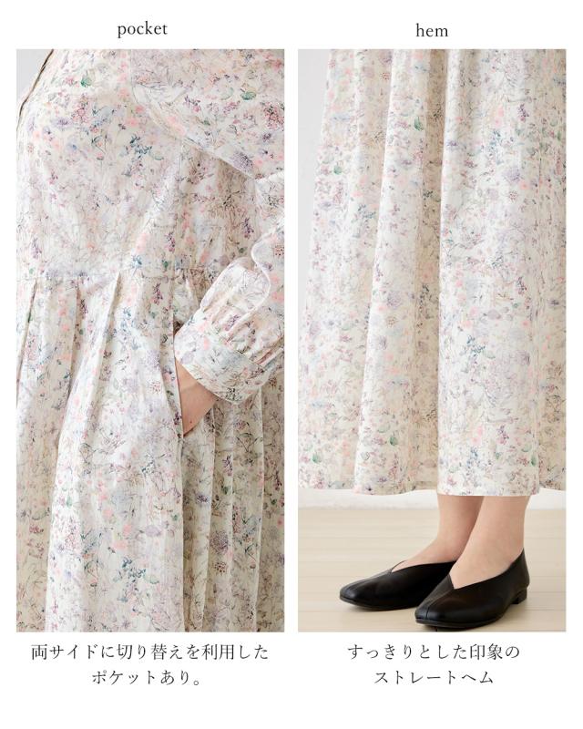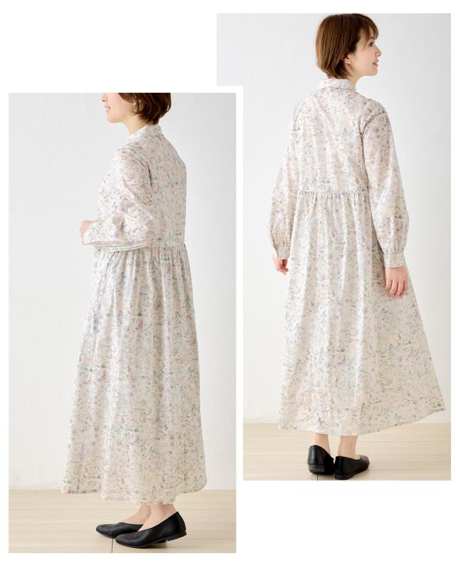 上品で繊細なリバティプリントのタナローンを使用したシャツワンピ。